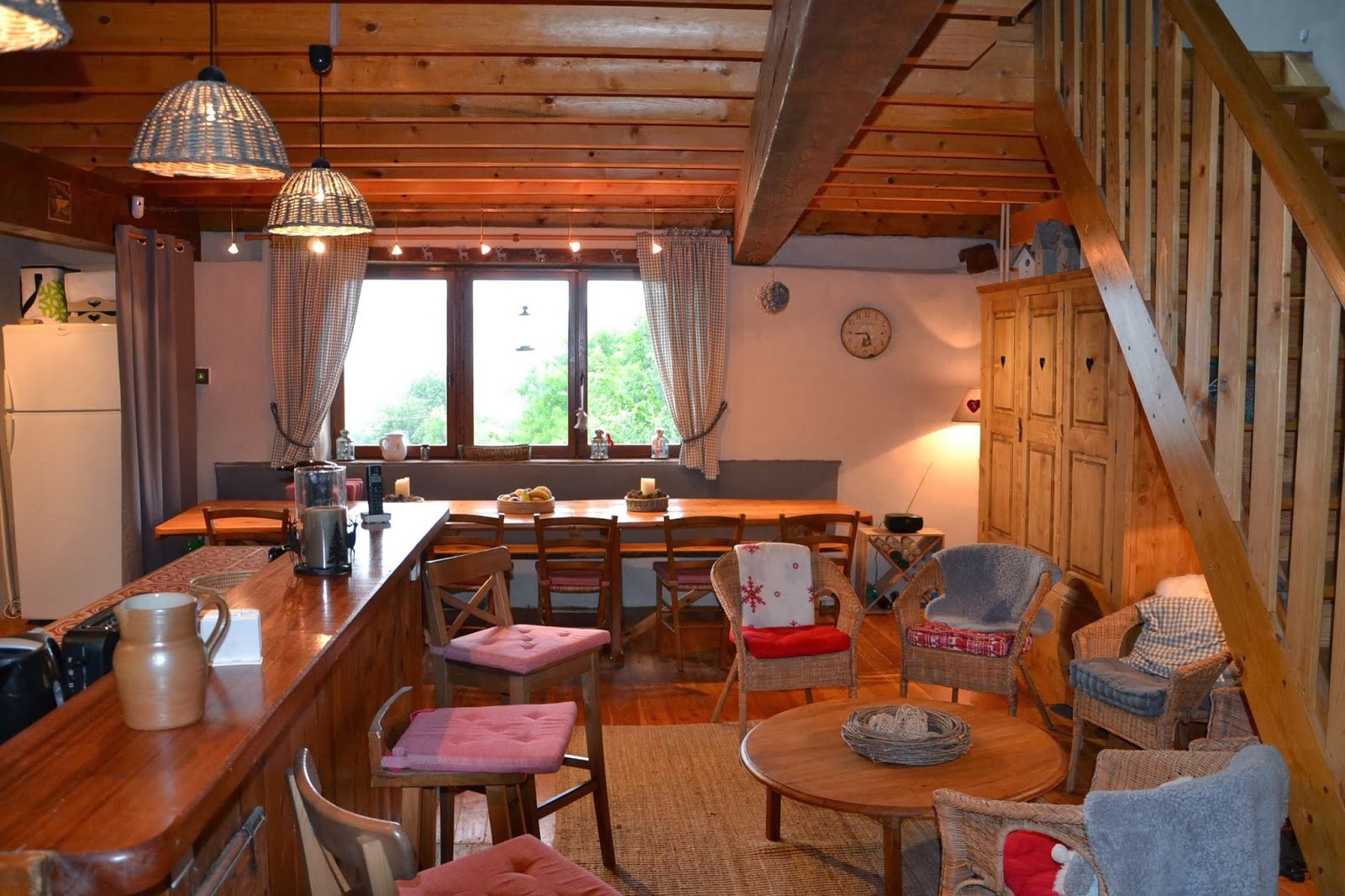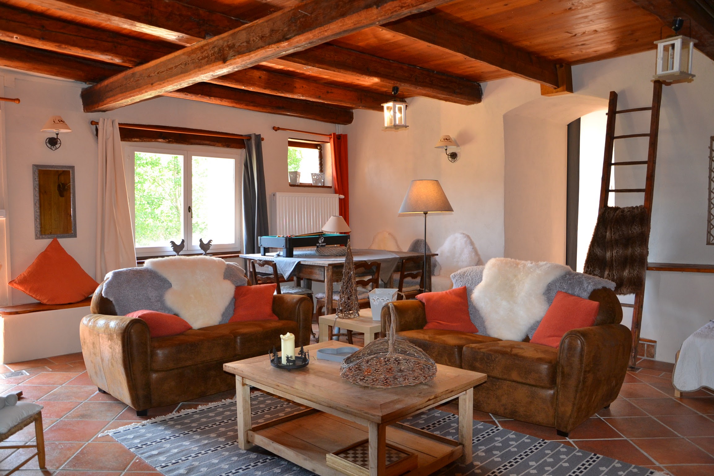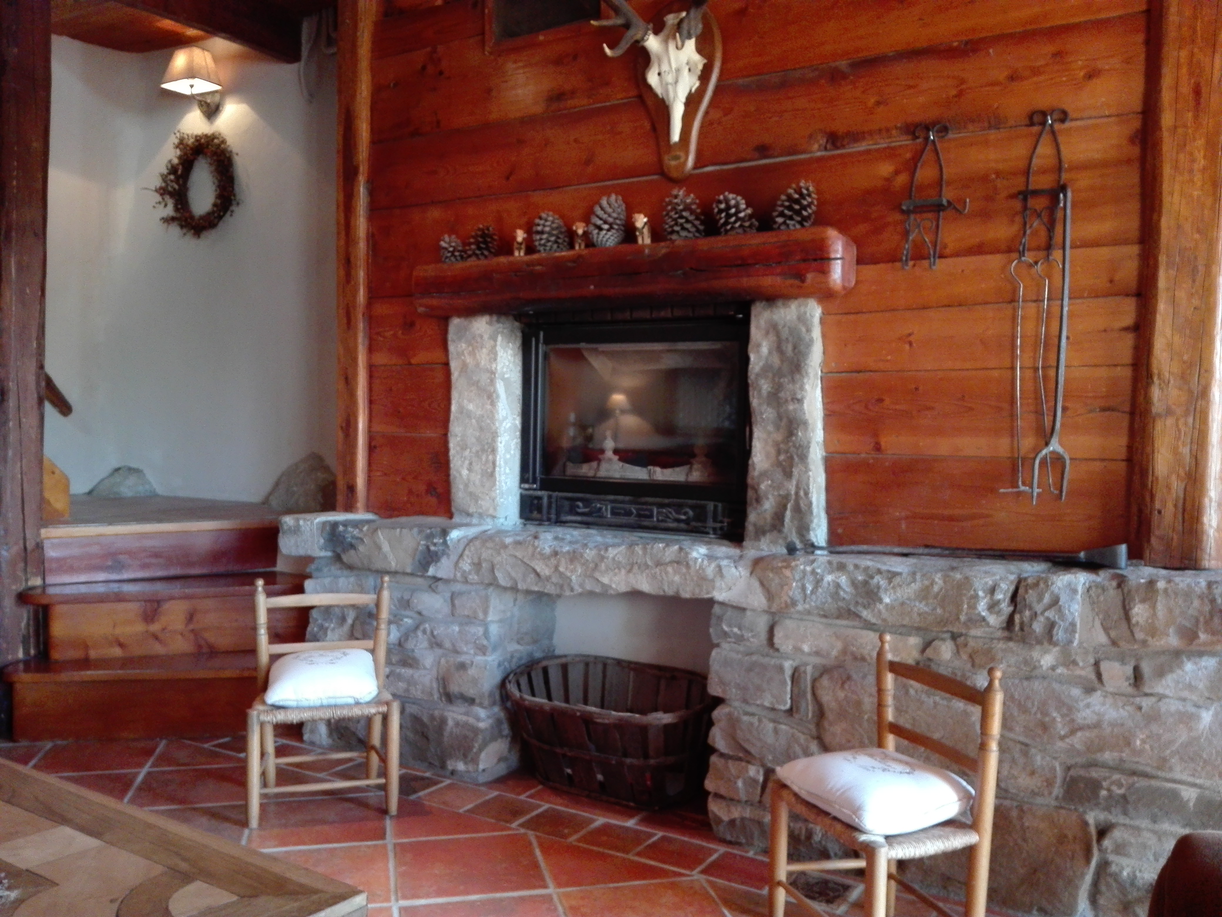 - un grand salon avec cheminée et télévision;