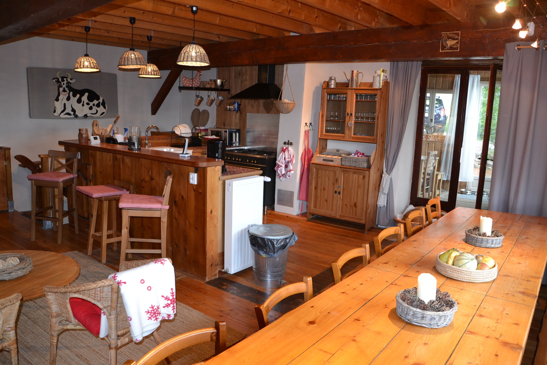 - un coin repas avec une très grande table pour 12 convives;