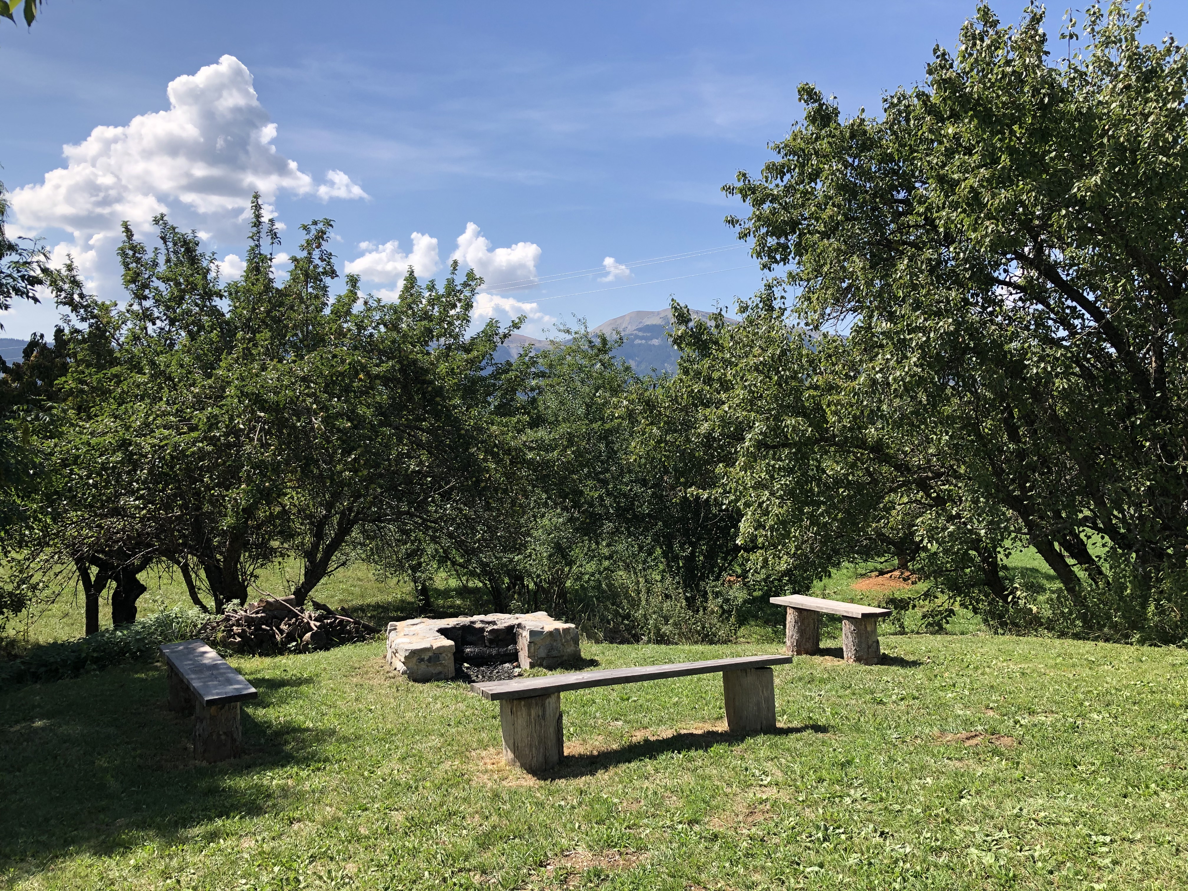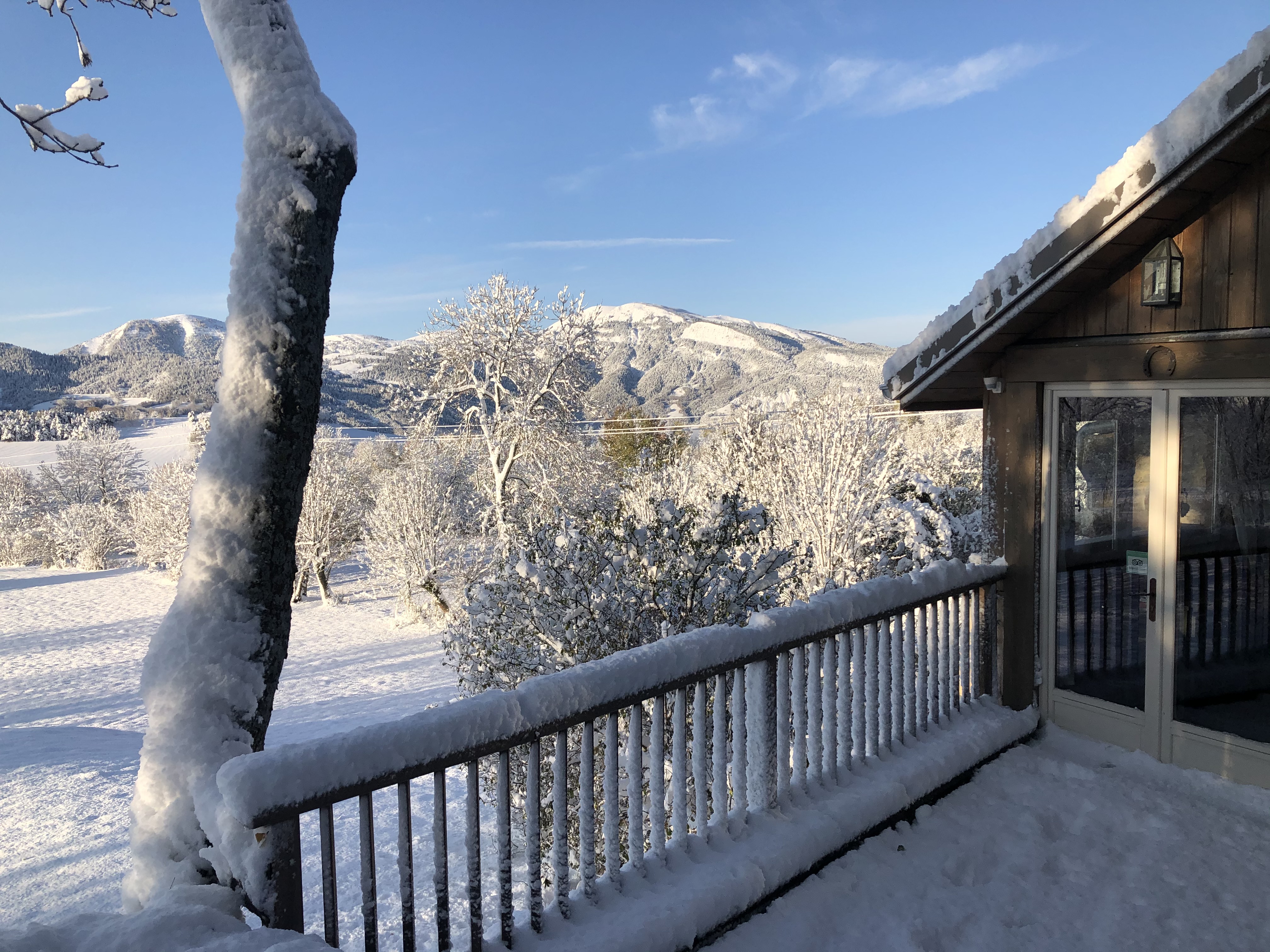 - un grand jardin avec vue panoramique sur les montagnes.