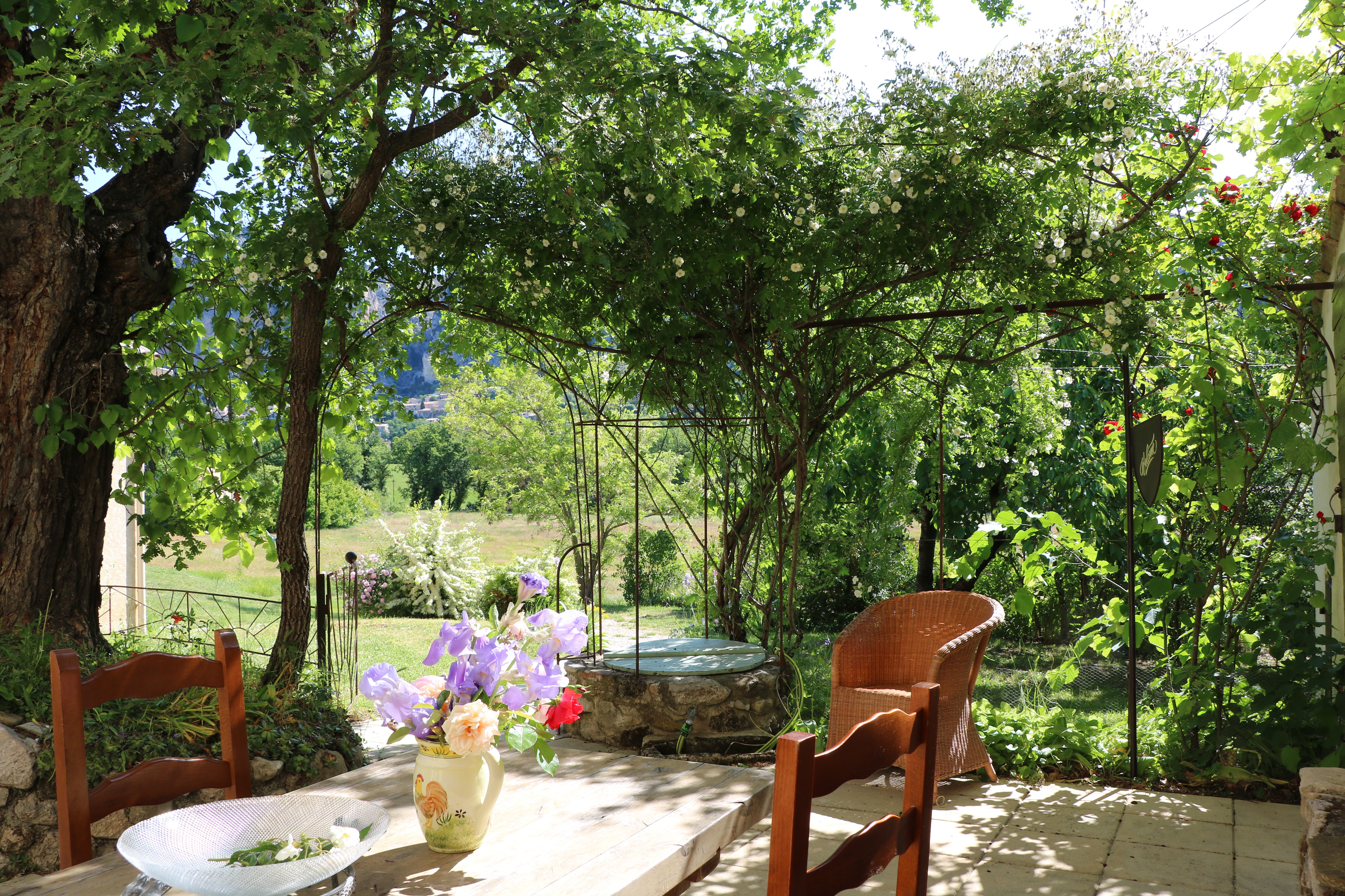 Au pied du village de MOUSTIERS SAINTE MARIE au calme, et avec vue superbe sur les falaises, jolie MAISON sur deux étages : de 2 à 20pers, 40 m2 de jolie terrasse ombragée. (terrain 5000 m2) avec vue imprenable sur le village .