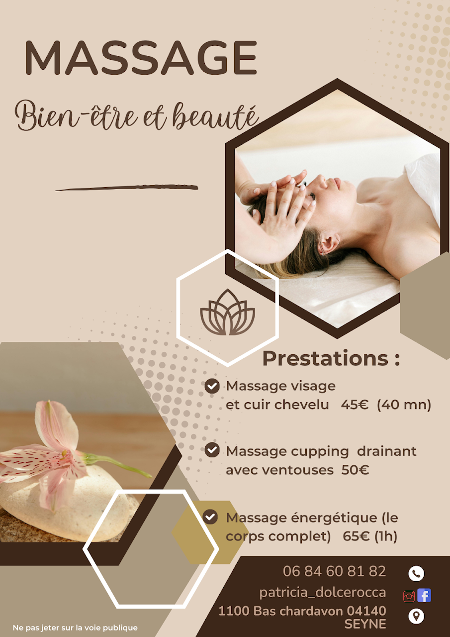Des massages drainants et liftants avec la méthode "cupping" et des massages énergétiques avec des points d'acupressions (corps complet).